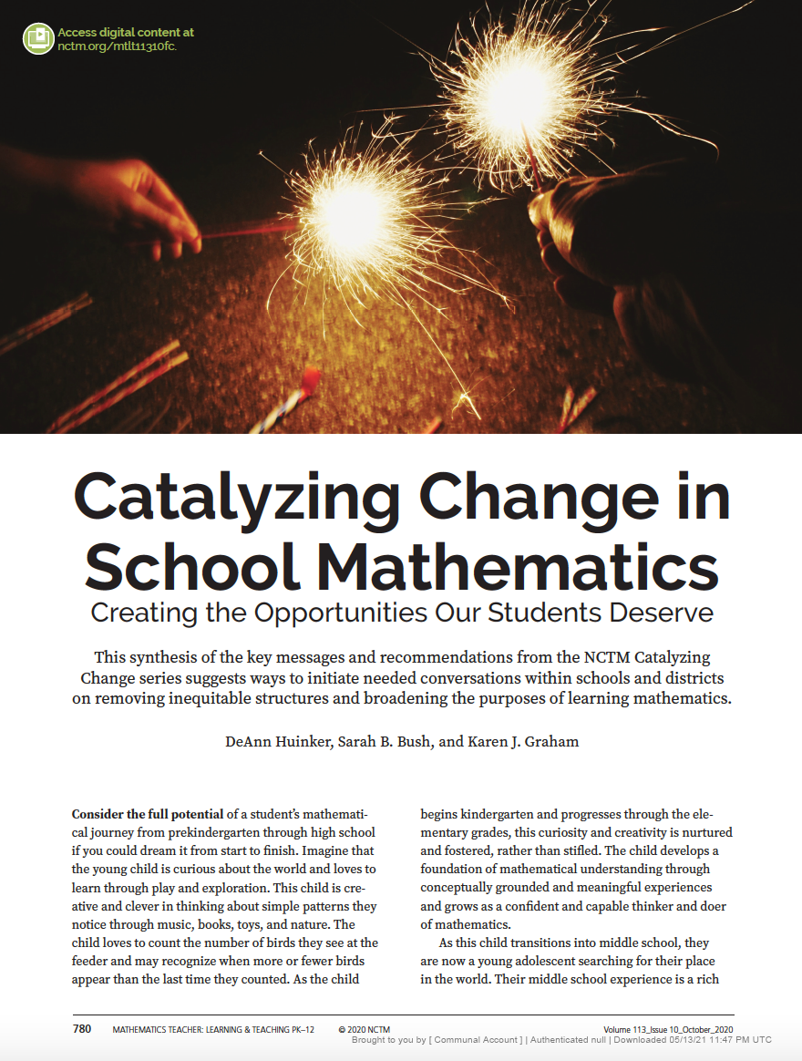 Catalyzing Change in School Mathematics Creating the Opportunities Our Students Deserve